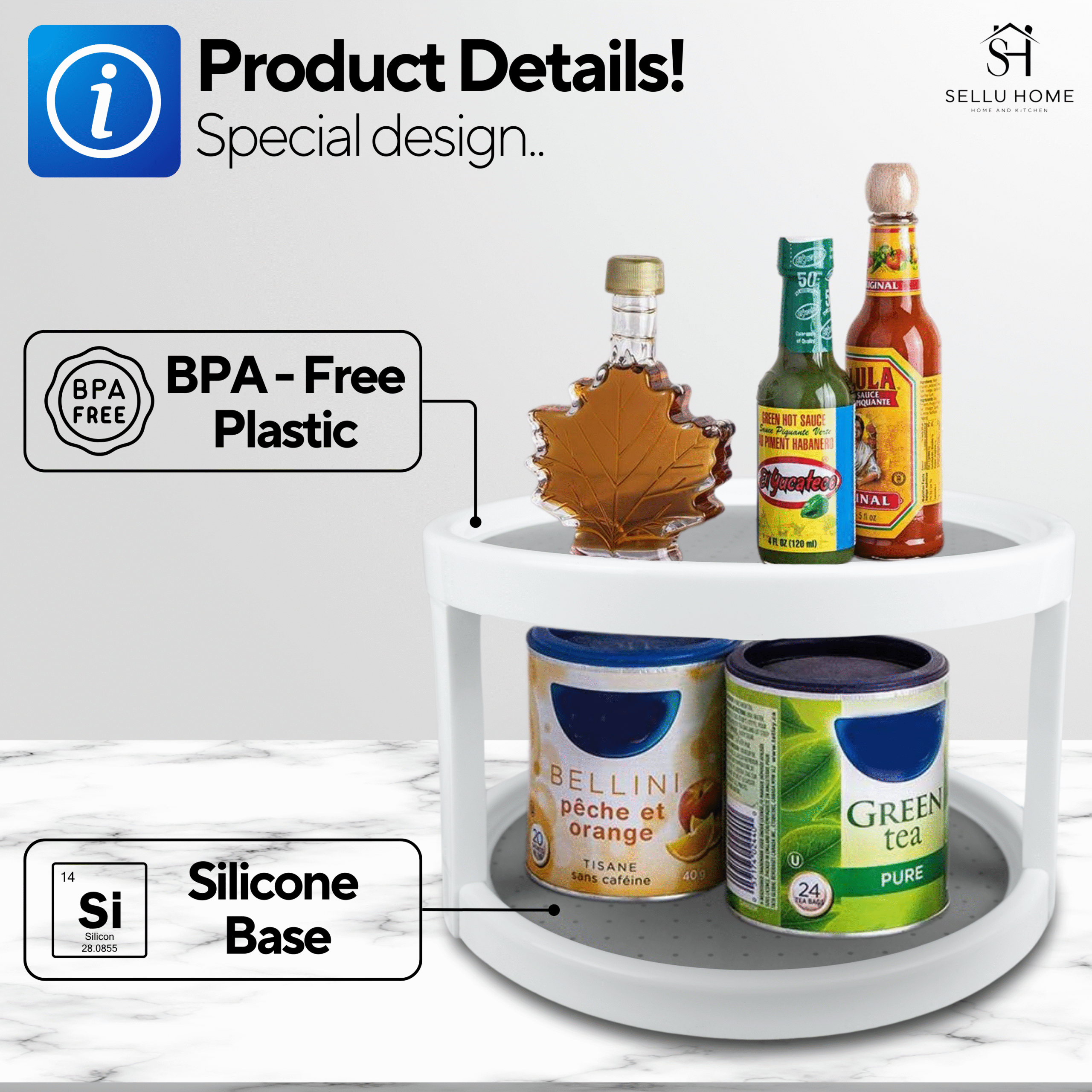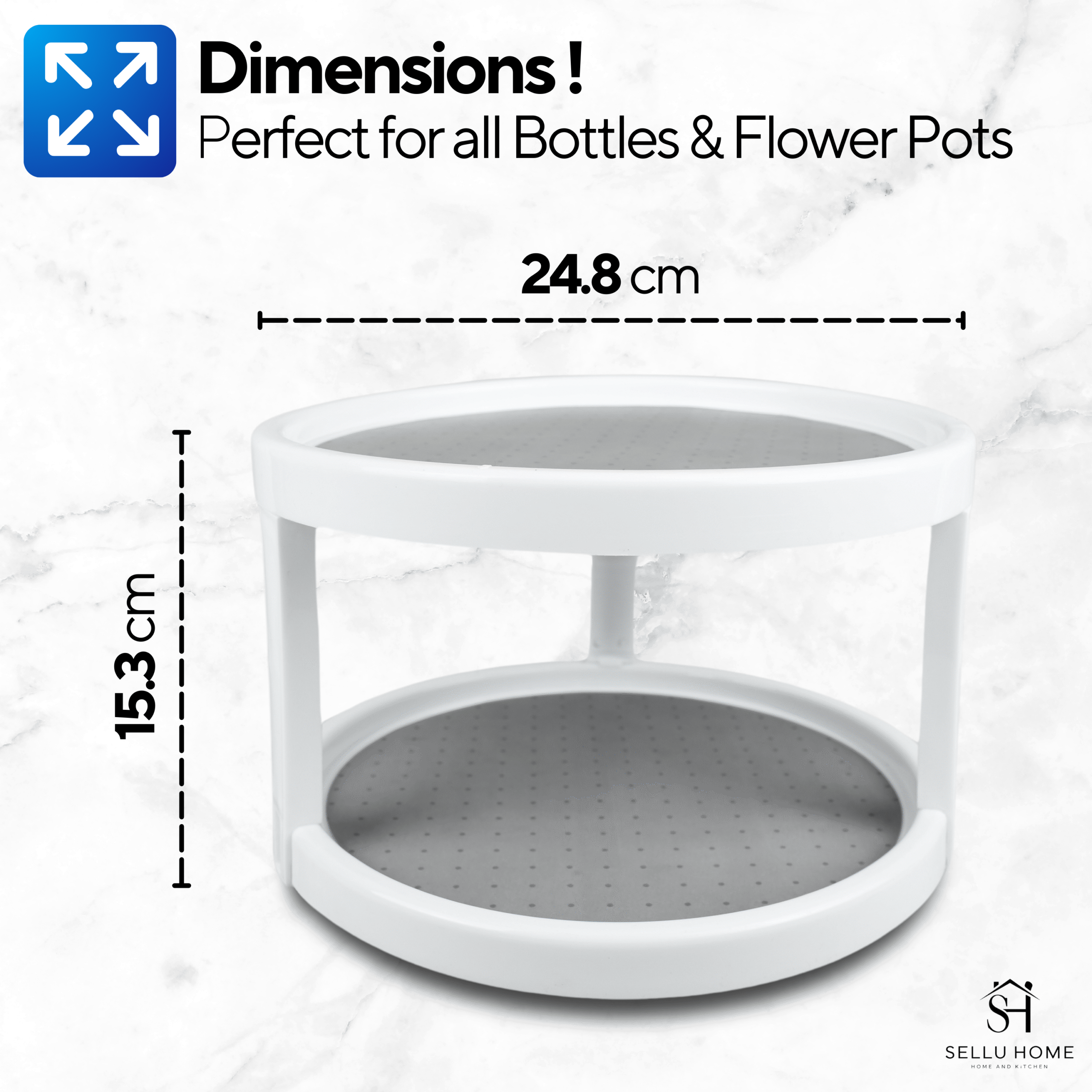 Introducing the Double Layer 360 Degree Rotating Kitchen Organizer Spice Rack by SELLU HOME, the ultimate solution for keeping your spices neatly organized and easily accessible! This stylish and functional spice rack features a unique double layer design that maximizes storage space while allowing for effortless rotation. Say goodbye to cluttered countertops and hello to a beautifully organized kitchen! With its durable construction and elegant look, this spice rack is not just a kitchen accessory, but a statement piece that brings both convenience and style.